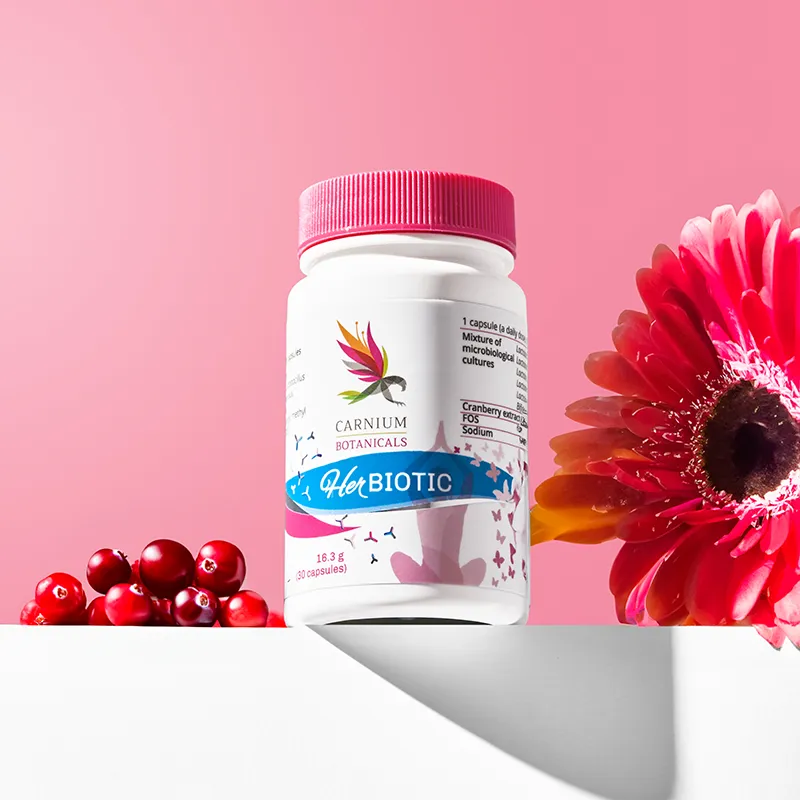 Ein spezielle probiotische Mischung für Frauen, die Pilzinfektionen erfolgreich bekämpft und die Intimmikrobiota reguliert. Her Biotic ist eine einzigartige Mischung aus 6 probiotischen Stämmen, D-Mannose und Preiselbeere-Extrakt. Die enthaltenen Laktobazillen sind die wichtigsten nützlichen Bakterien im Intimbereich.